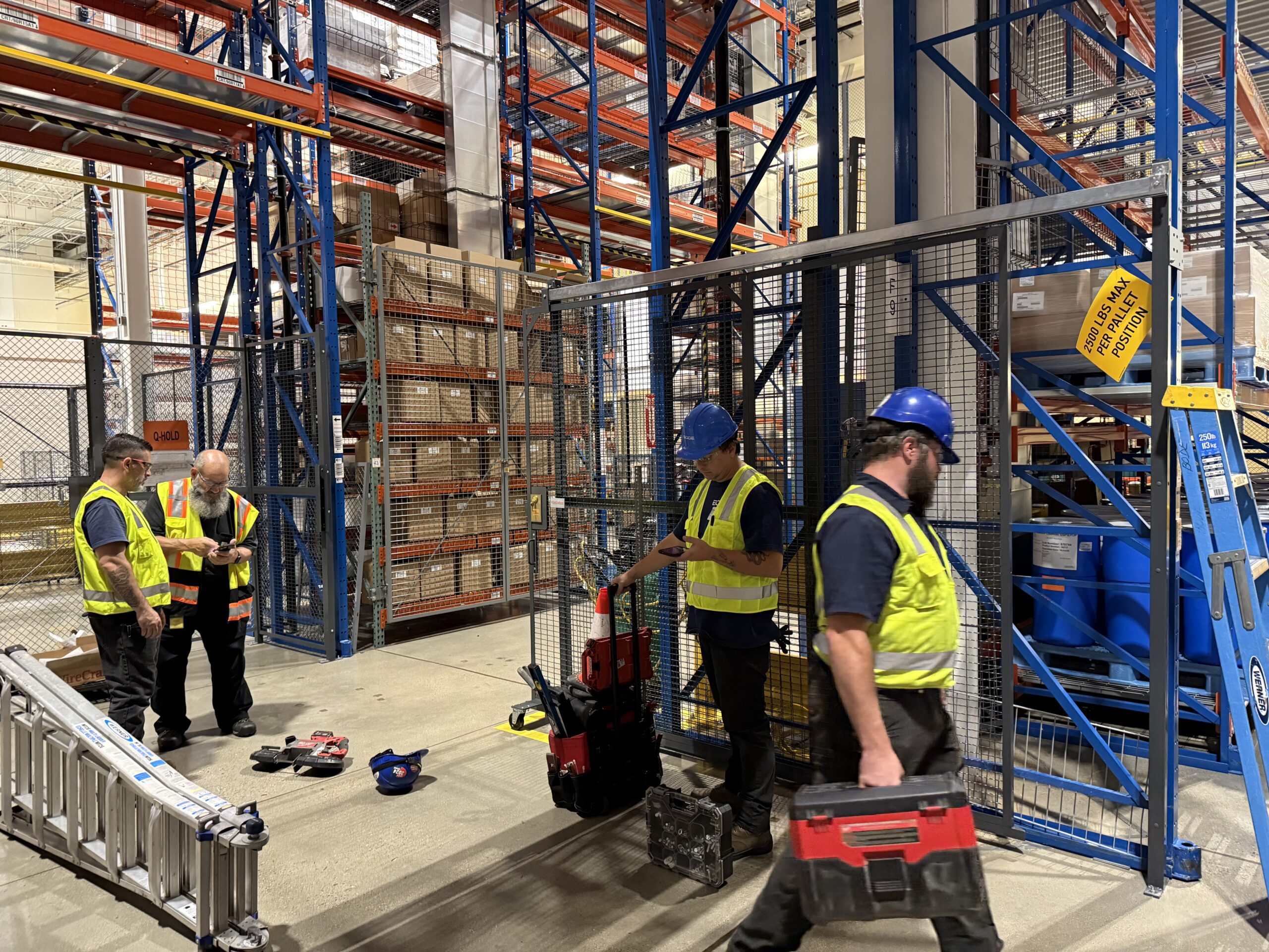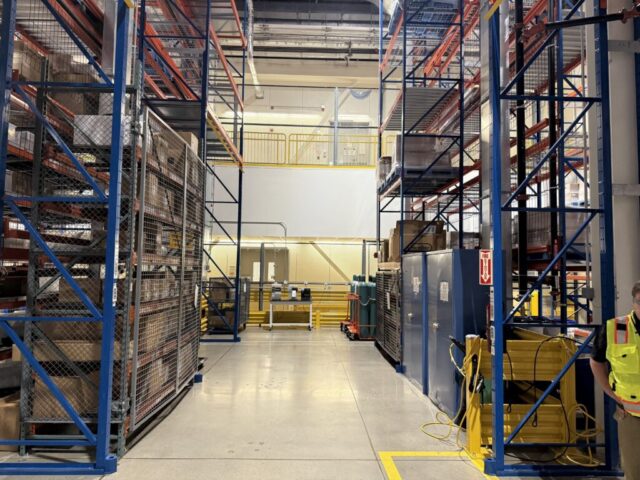 The customer needed a way to secure a designated warehouse area within a large pharmaceutical research and development facility while still supporting daily operations and oversight. Wire partitions paired with a sliding tunnel gate were selected to clearly block off and control access to this space, creating a defined secure area within the larger warehouse environment. The wire mesh panels were engineered to meet the exact height and width specifications required by both the FDA and the client, with keyed locks providing an added layer of access control. At the same time, the open wire design maintained clear visibility into the secured area, allowing assigned staff to easily monitor inventory and activity without sacrificing security.
