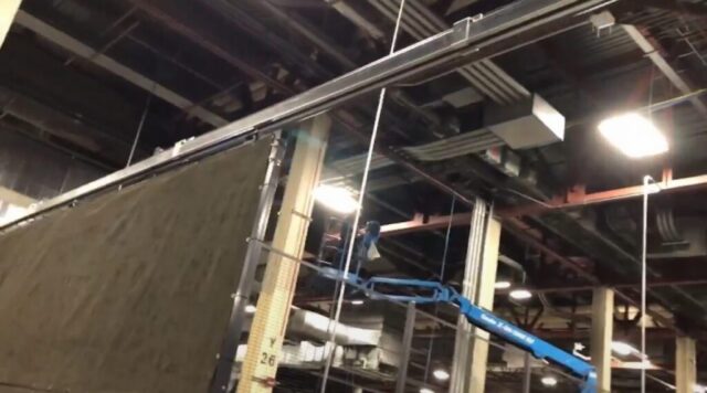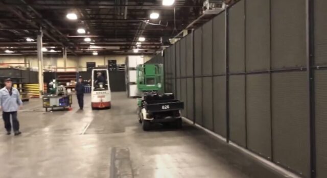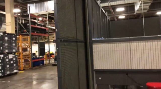Inside the facility, Vallen’s team was challenged with creating a controlled, enclosed area large enough to support ongoing operations while limiting visibility from the surrounding plant floor. Standard guarding solutions were not sufficient for the size or functional requirements of the space, particularly given the need for wide openings to accommodate frequent movement of equipment and materials. In addition, the area required powered access points, making manually operated doors impractical. To meet these needs, the application called for an expansive WireCrafters wire partition cage with automatic sliding doors, along with nylon blackout curtains supplied by Vallen to effectively block sightlines and enhance privacy within the enclosure.