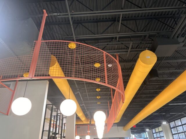 WireCrafters partnered with Cardinal Integrated to bring a bold, creative vision to life at Nulu Mashup Food Hall. The project called for more than a traditional wire partition application. It required a design-forward solution that would enhance the aesthetic of a vibrant, modern food hall while still delivering the structure and durability for which WireCrafters is known. Through custom paint finishes, ceiling-hung panels, wall-mounted installations, and uniquely curved sections formed to wrap around corners, this collaboration transformed standard wire panels into a standout architectural feature that complements the energy and style of the space.